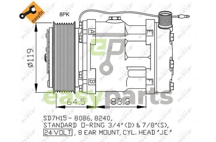 з компресорною олією PAG - Форма штепсельного корпуса