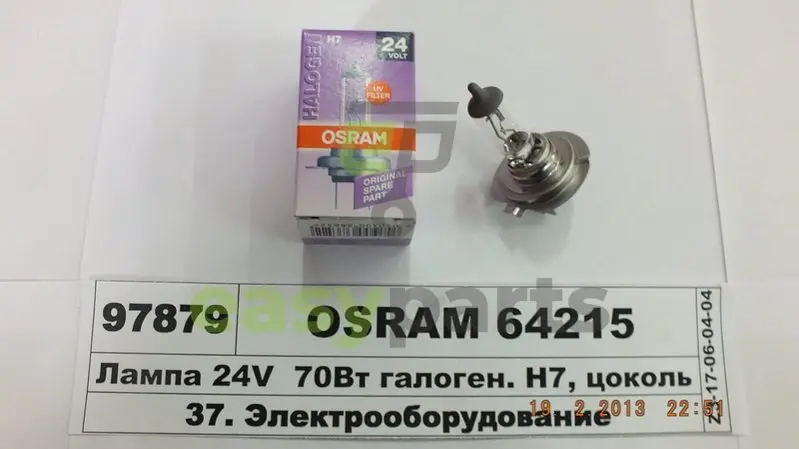 Лампа H7 24V 70W PX26d STANDARD OSRAM 64215