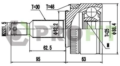 Зубчасте з'єднання з боку коробки: 25