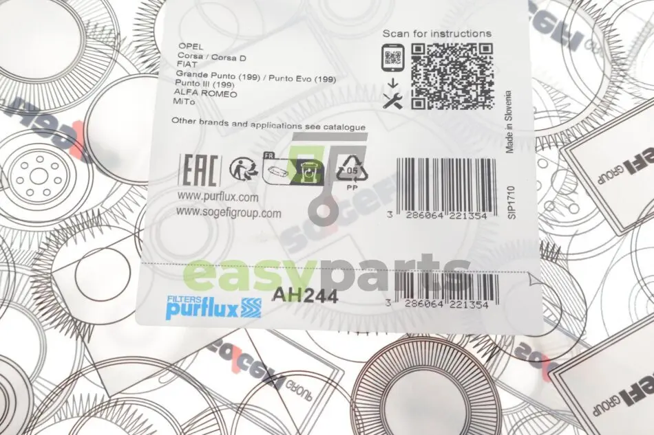 - AH244 Purflux (Пурфлюкс) підходить для таких марок/моделей авто: