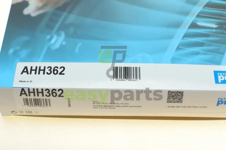 Фільтр салону Audi A6/A7/A8 10- (антиалергенний, захист від вірусів) CabinHepa+ Purflux (Пурфлюкс) AHH362