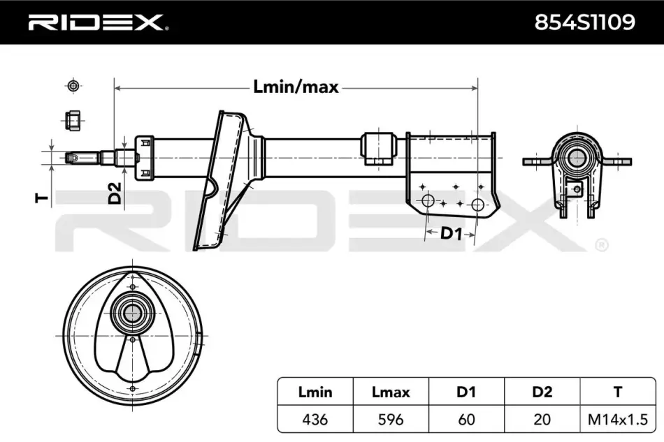Амортизатор (передний) L/P газ RENAULT KANGOO 1.6/1.9dCi 10.01- RIDEX 854S1109