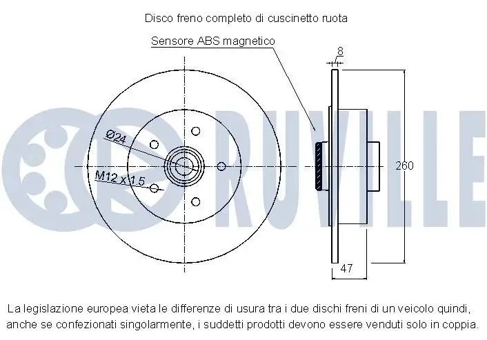 RENAULT диск гальмівний задній з підш. Megane 08- RUVILLE 221459