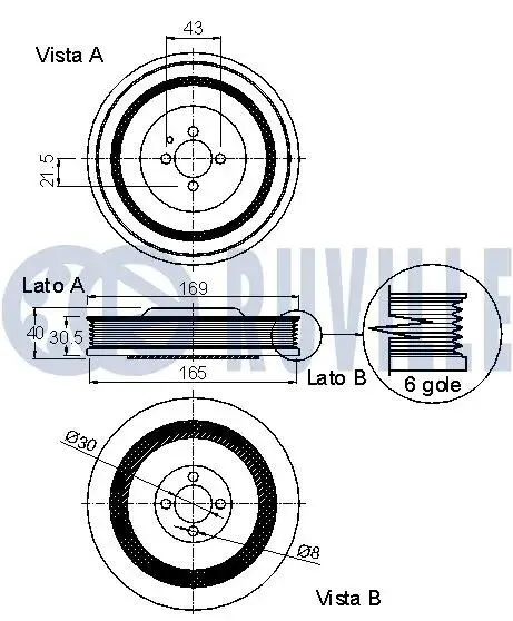 FIAT Шків колінвалу Bravo,Doblo 1.9JTD RUVILLE 520245