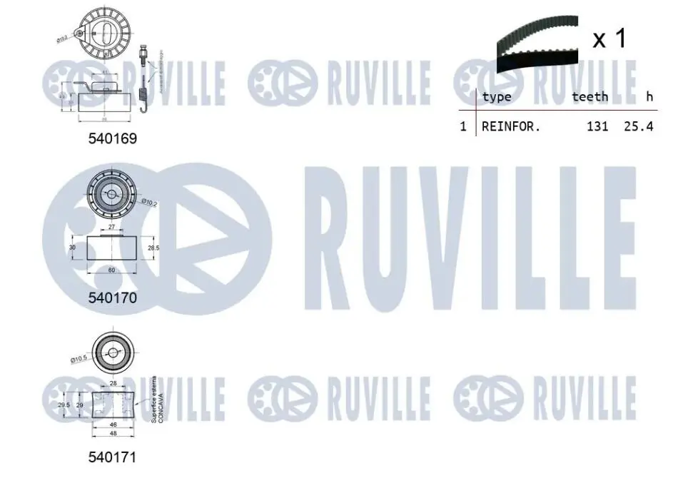 К-кт. ГРМ (рем.+3шт. ролика+кріплення) FORD Escort 1,6/1,8 92-01 RUVILLE 550015