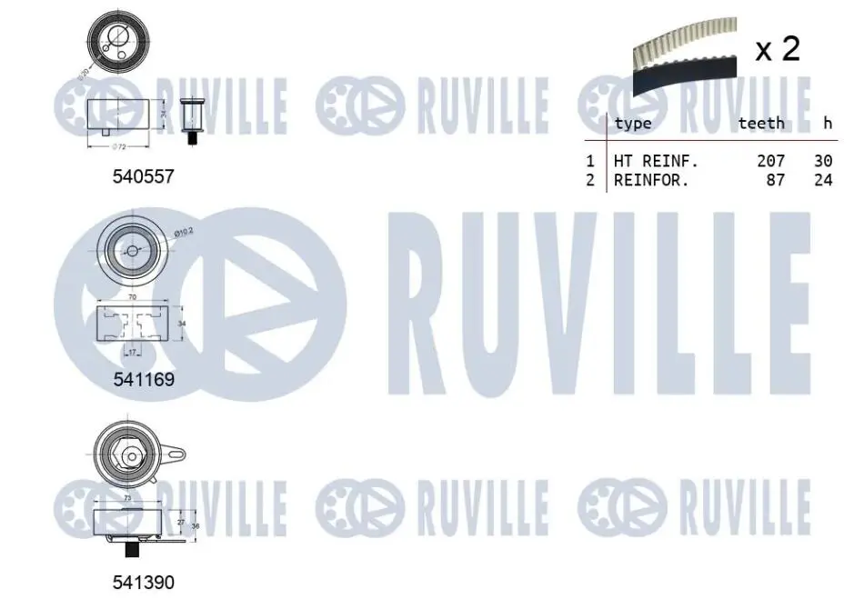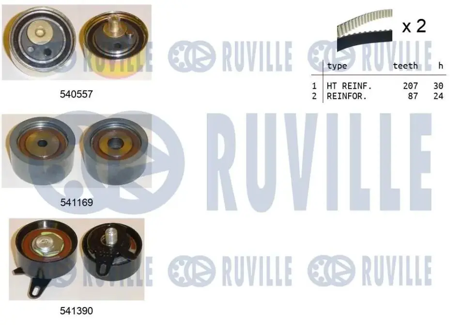 К-кт. ГРМ (2шт.рем.+3шт.ролика+крепление) AUDI A6,A8 2,5TDI RUVILLE 550383