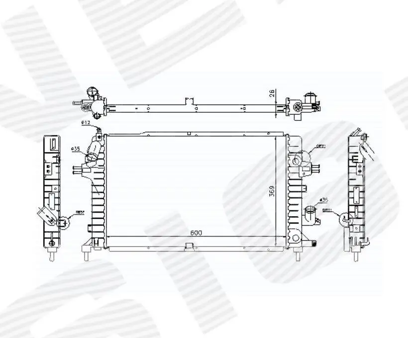 Розміри радіатора: 600 x 369 x 26