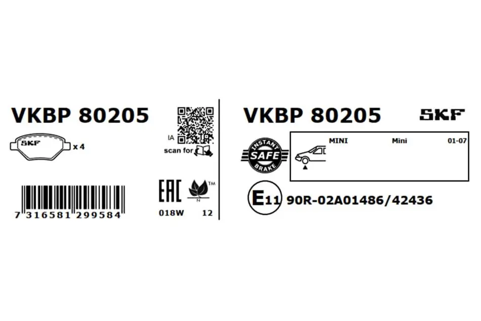 Колодки гальмівні (передні) Mini Cooper/One 01-06 SKF (СКФ) VKBP80205