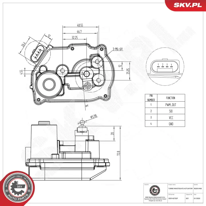 Turbo wastegate actuator SKV GERMANY 95SKV458