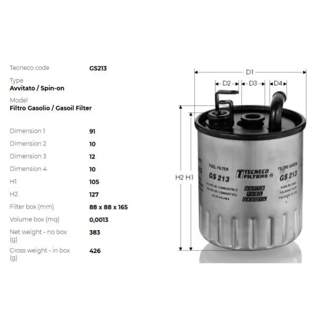 Фільтр паливний DB W168 A160-A170 CDI 99- TECNECO GS213