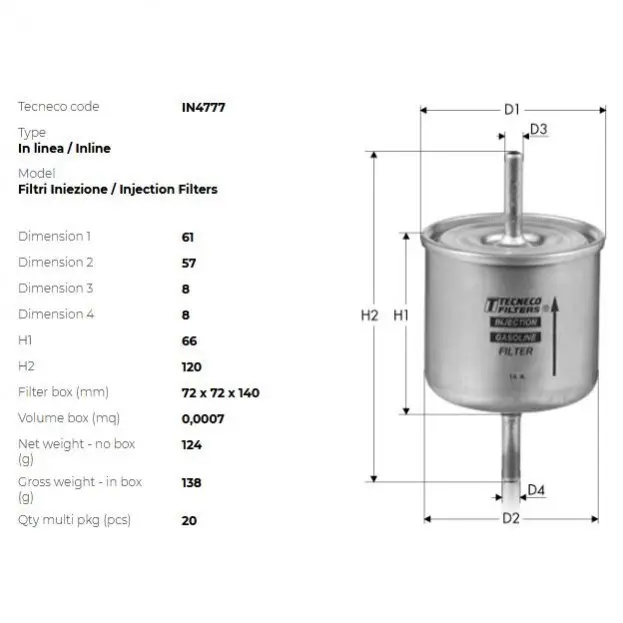 Фільтр паливний Nissan Micra 1.0SLX, 1.3SLX 8/92-, Primera 2 TECNECO IN4777