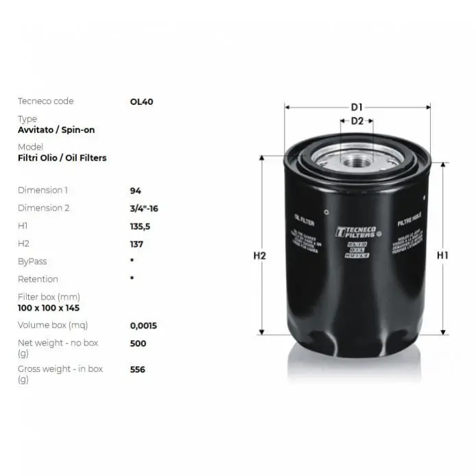 Фільтр масляний Ford Maverick 2.7TD (Eng. TD27E) 05/96-12/98, Explorer 4.0 91-01 Nissan Patrol/Terrano II 2.7TD 01/96- TECNECO OL40