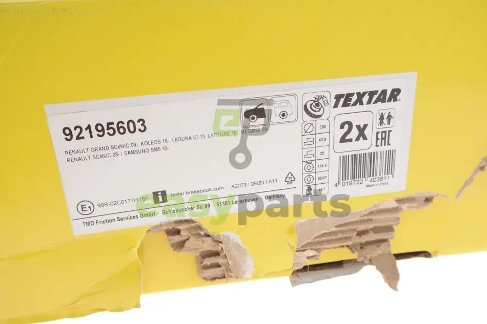 - 92195603 TEXTAR (Текстар) підходить для таких марок/моделей авто: