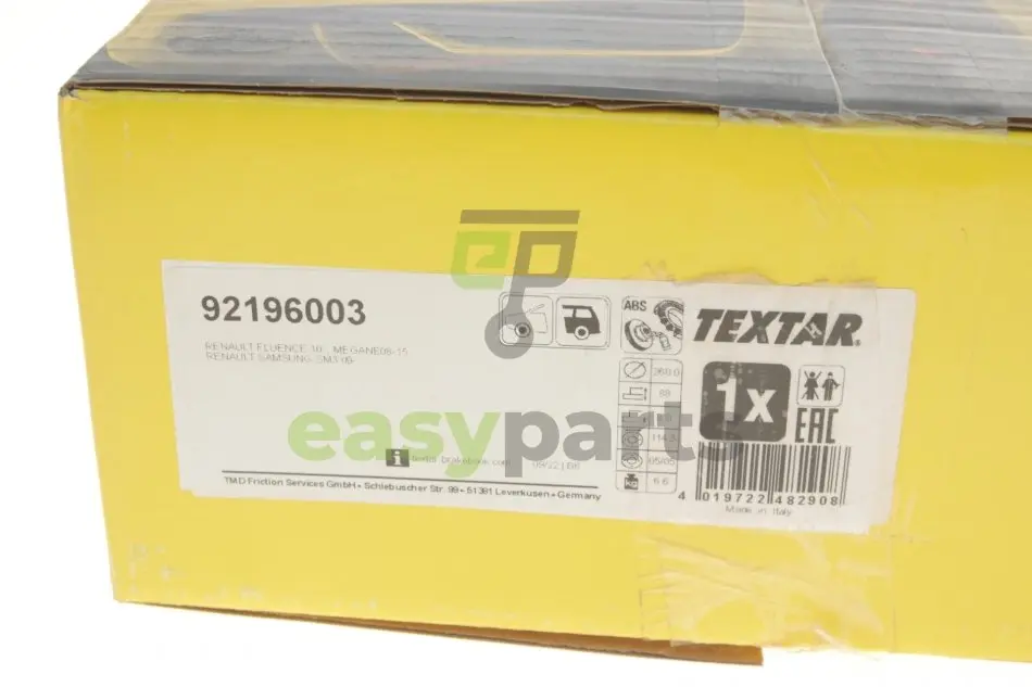 - 92196003 TEXTAR (Текстар) підходить для таких марок/моделей авто: