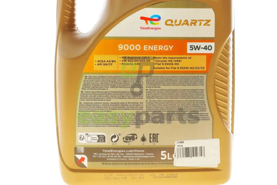 Олива 5W40 Quartz 9000 Energy (5L) (MB229.1/VW502.00/505.00) TOTAL 216609