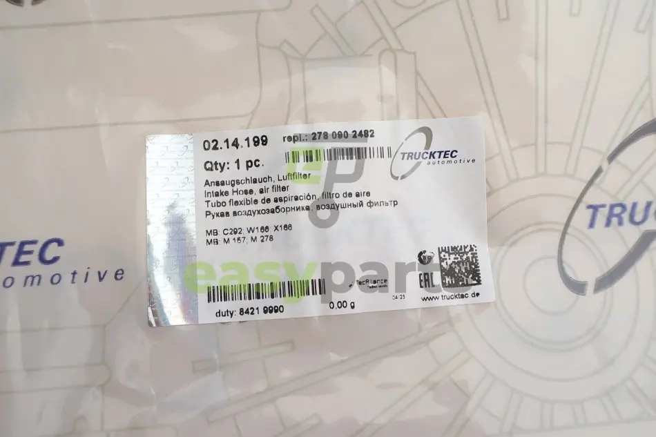 Купити TRUCKTEC 02.14.199 Патрубок фільтра повітряного MB M-class (W166) 11-15 (R) з швидкою доставкою, або зручним самовивозом, по доступній ціні