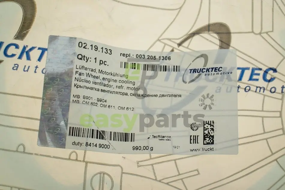 Крильчатка вентилятора MB Sprinter 2.9TDI (9 лопастей/ 3 кріплення) TRUCKTEC 02.19.133