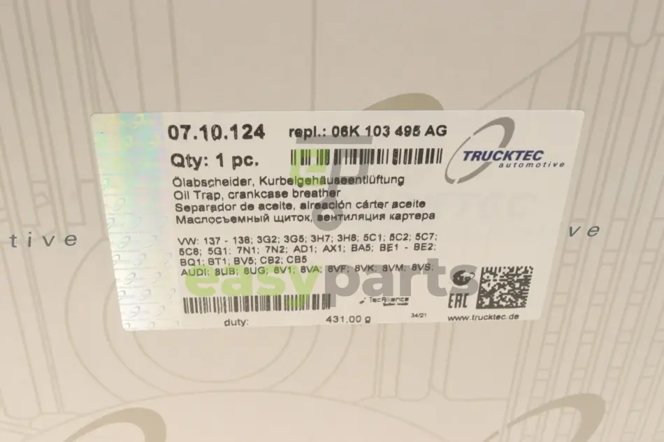 Сепаратор (мастиловіддільник) VW Golf VII/Passat/Sharan/Tiguan 2.0 TSI 12- TRUCKTEC 07.10.124