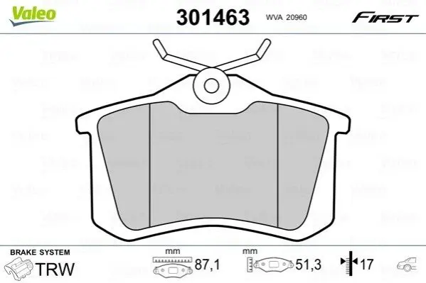 Гальмівні колодки дискові VAG/CITROEN/FIAT/FORD/PEUGEOT A1-8/Berlingo/308/Golf "1,0-6,0 "R "88>> Valeo (Валео) 301463
