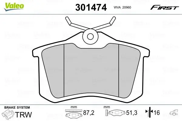 Гальмівні колодки дискові CITROEN/PEUGEOT/RENAULT C3/207/Clio/Fluence/Megane "1,1-3,0 "R "98>> Valeo (Валео) 301474