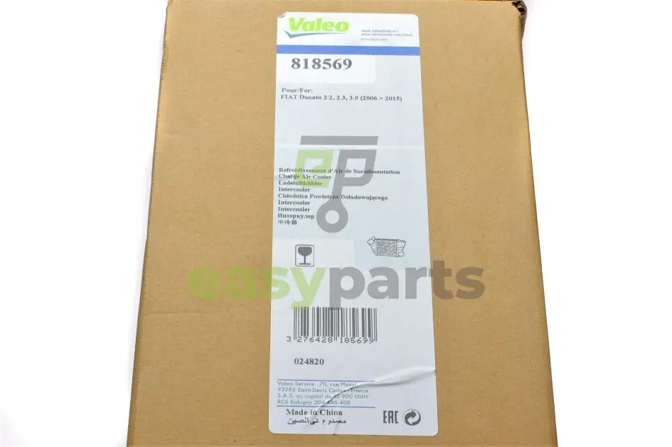 Радіатор інтеркулера Citroen Jumpy/Peugeot Expert 2.0-3.0HDi 06- Valeo (Валео) 818569