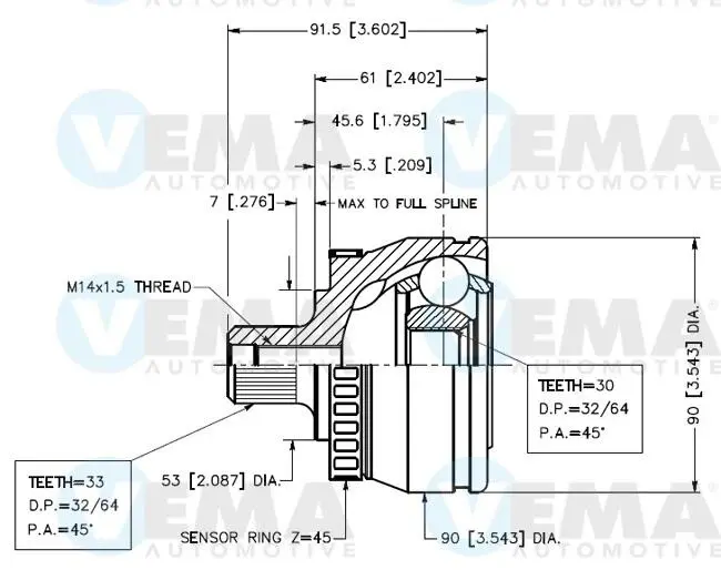 Шрус зовнішній AUDI A4 95-01, A6 97-04, SKODA SUPERB 02-08, VW PASSAT B5 97-05 VEMA 18644