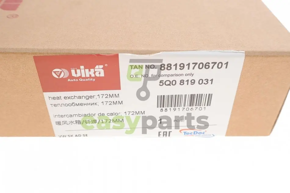 Радіатор пічки VW Golf/Passat/Audi A3/Skoda Octavia 12- Vika (Віка) 88191706701