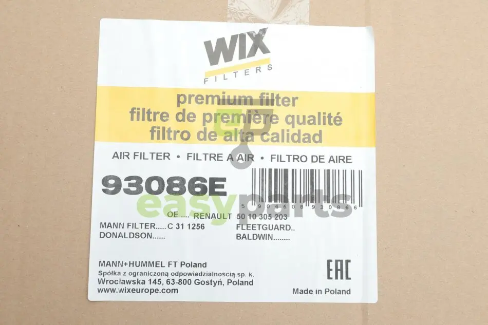 Фільтр повітряний Renault Agora/C/G/Maxter/R/Tracer 87- WIX FILTERS (Вікс) 93086E
