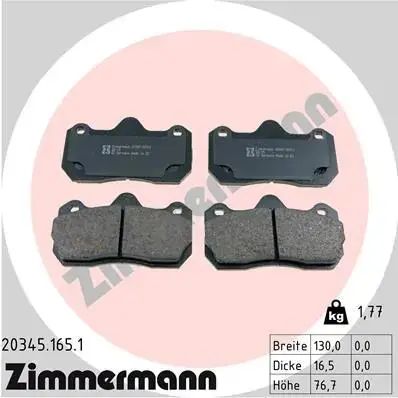 Комплект гальмівних колодок, дискове гальмо ZIMMERMANN (Зіммерман) 20345.165.1